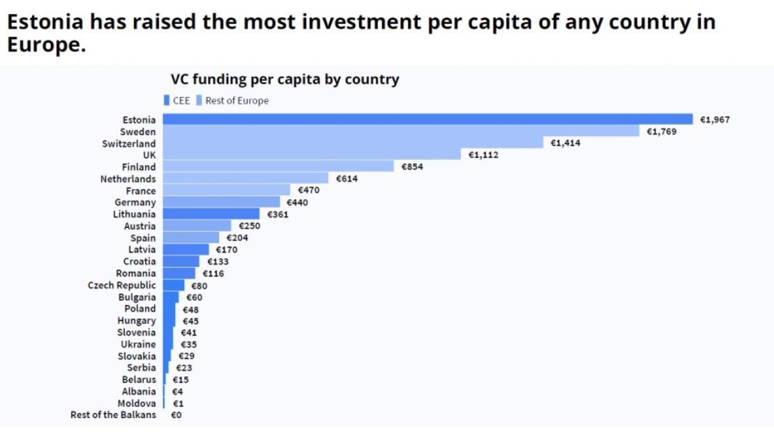 «Η Εσθονία ηγείται της Ευρώπης σε νεοφυείς επιχειρήσεις, “μονόκερους” και κατά κεφαλήν επενδύσεις » λέει με υπερηφάνεια ο Joonas Vanto. Μία χώρα με πληθυσμό μόλις 1,3 εκατομμυρίων κατοίκων, ανεξάρτητη τα τελευταία 31 χρόνια, η Εσθονία απέκτησε, το πρώτο τρίμηνο του 2022, τον δέκατο μονόκερό της (νεοφυής επιχείρηση που η αποτίμηση της αξίας της ξεπερνά το 1 δισεκατομμύριο δολάρια). Μεταξύ αυτών: Skype, Playtech, Wise, ID.me και Glia.