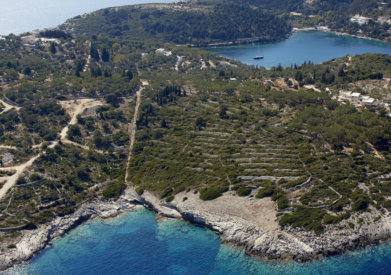 Το ένα από τα ακίνητα του Β. Γκρίσιν εντοπίζεται στο βορειοδυτικό τμήμα της νησίδας με απεριόριστη θέα στον όρμο της Οζιάς έως την παραλία Μπάλος και το Ιόνιο Πέλαγος.