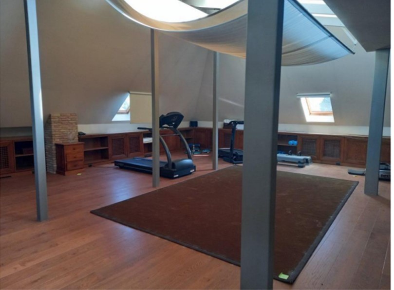 Ο 2ος όροφος (σοφίτα) περιλαμβάνει διάδρομο και χώρο γυμναστηρίου, μασάζ, και καθιστικού με λουτρό. Ο χώρος του γυμναστηρίου έχει ξύλινα δάπεδα, χτιστό τζάκι επενδεδυμένο με πυρότουβλα, περιμετρικά ξύλινα ερμάρια χαμηλού ύψους με ειδικές θέσεις τοποθέτησης για κλιματισμό τύπου fan coil δαπέδου.
