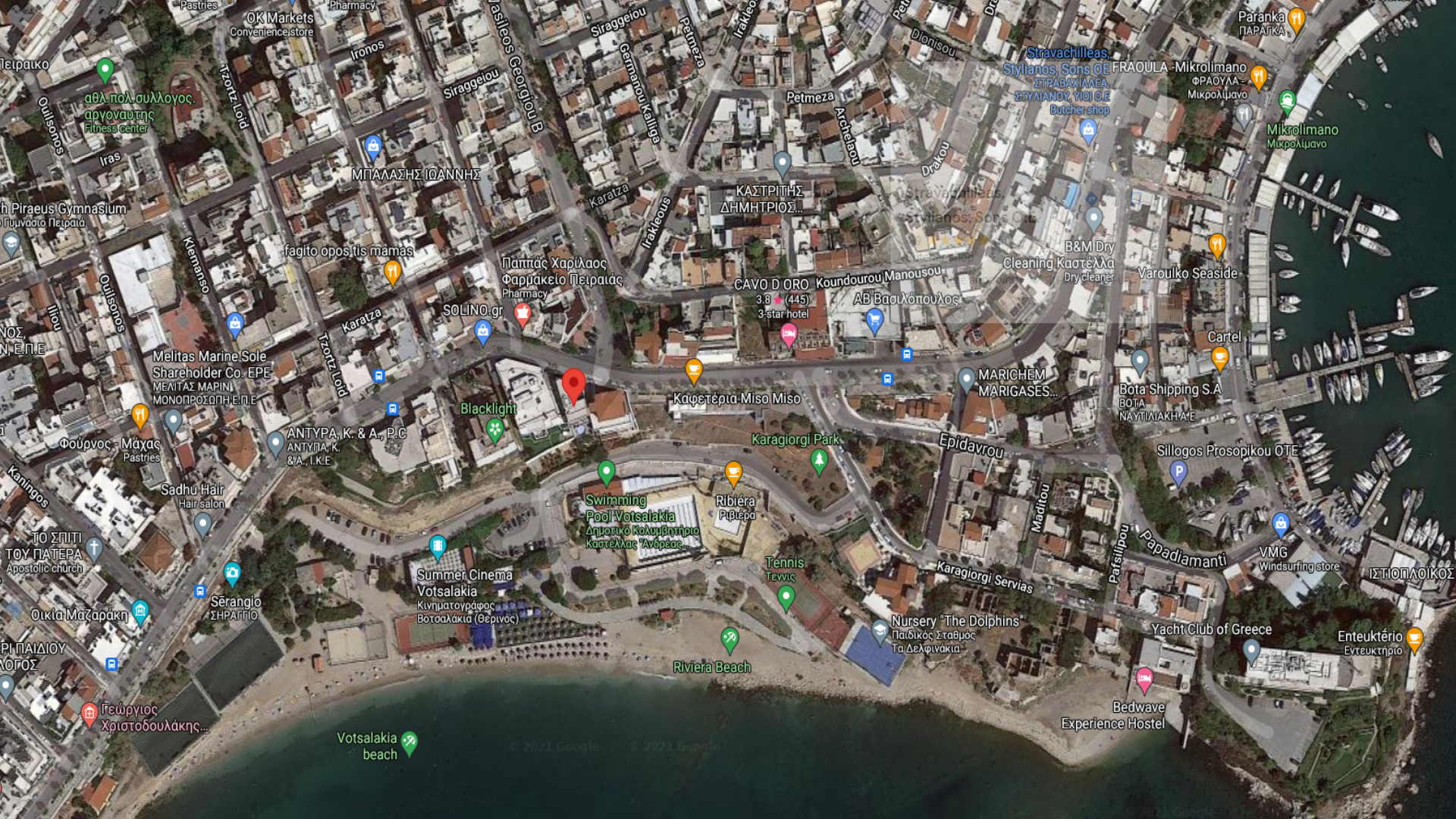 Όπως αναφέρεται στην έκθεση εκτίμησης «η άμεσα γύρω περιοχή του ακινήτου χαρακτηρίζεται ως περιοχή γενικής κατοικίας και διαθέτει μικτή χρήση γης, με εμπορικά καταστήματα τόσο επί των κεντρικών οδικών αρτηριών (Λ. Παπαναστασίου, Ακτή Κουντουριώτου κλπ), όσο και επί των δευτερευόντων οδών, καθώς και οικιστικά ακίνητα συμβατικής κατασκευής στη πλειονότητά τους. Το ακίνητο, τοποθετείται 2ο από τη θάλασσα, όμως λόγω εδαφικών κλίσεων, διαθέτει ανεμπόδιστη θέα προς τη θάλασσα και βρίσκεται όπισθεν κτιρίων δημοσίου ενδιαφέροντος όπως το Δημοτικό Κολυμβητήριο Καστέλας, δημοτικές εγκαταστάσεις τένις κ.α. Το εκτιμώμενο βρίσκεται σε απόσταση 50μέτρων από το παραλιακό μέτωπο και γενικά τοποθετείται σε μία εκ των καλύτερων θέσεων της ευρύτερης περιοχής του Πειραιά».