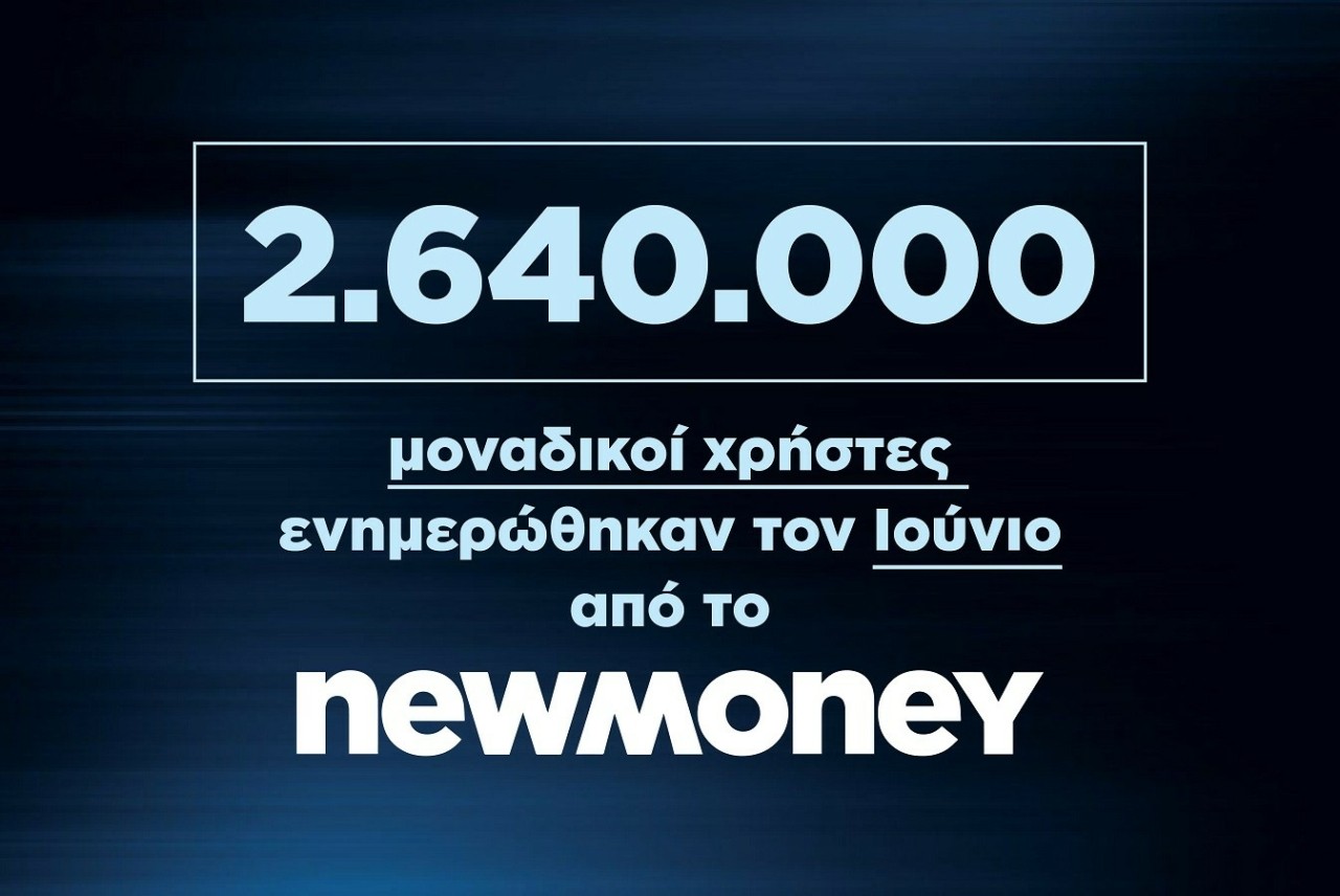 2.640.000 μοναδικοί χρήστες επέλεξαν το newmoney.gr και τον μήνα Ιούνιο 2023 για να ενημερωθούν για όσα συνέβησαν στην οικονομία, στις επιχειρήσεις, στην κοινωνία και στις αγορές.