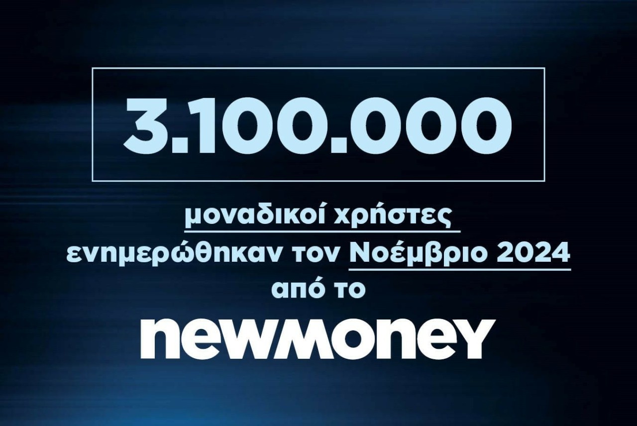 3.100.000 μοναδικοί χρήστες επέλεξαν το newmoney.gr και τον μήνα Νοέμβριο 2024 για να ενημερωθούν για όσα συνέβησαν στην οικονομία, στις επιχειρήσεις, στην κοινωνία και στις αγορές.