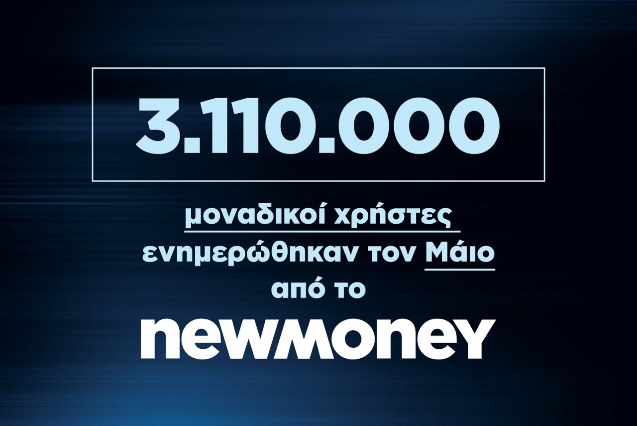 3.110.000 μοναδικοί χρήστες τον μήνα Μάιο 2022 επέλεξαν το newmoney.gr για να ενημερωθούν για όσα συνέβησαν στην οικονομία, στις επιχειρήσεις και στις αγορές, σύμφωνα με τα επίσημα στοιχεία, όπως αυτά καταγράφηκαν από την Google Analytics.