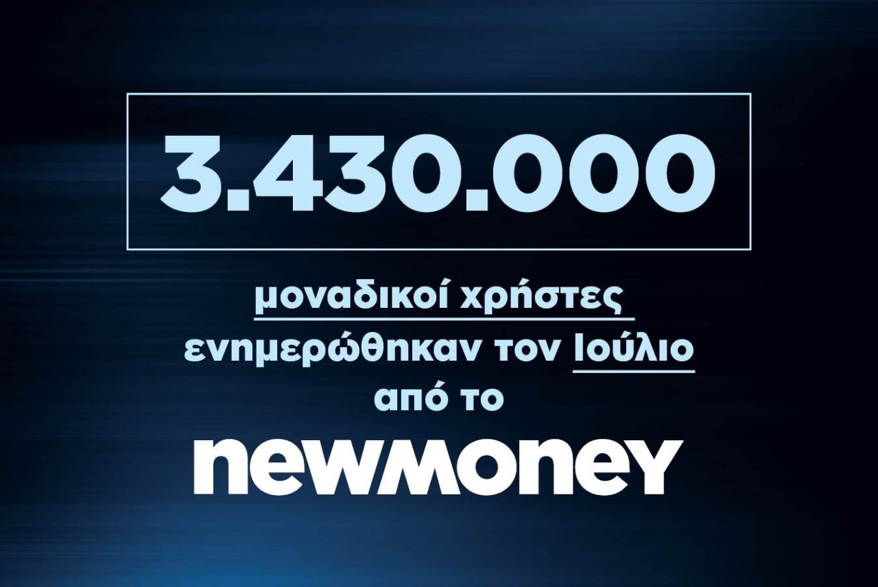 3.430.000 μοναδικοί χρήστες επέλεξαν το newmoney.gr τον μήνα Ιούλιο 2022 για να ενημερωθούν για όσα συνέβησαν στην οικονομία, στις επιχειρήσεις και στις αγορές.
