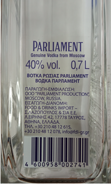 Κατά τη διενέργεια προγραμματισμένων ελέγχων, το Γενικό Χημείο (της ΑΑΔΕ) προέβη σε δειγματοληψία αλκοολούχου ποτού της κατηγορίας «βότκα» με την εμπορική ονομασία «PARLIAMENT», αλκοολικού τίτλου 40% vol., συνοδευόμενου από την ένδειξη «Purified with Milk», σε προσυσκευασία 0.7L. Το εν λόγω προϊόν παρασκευάζεται στη Ρωσία και διατέθηκε στην ελληνική αγορά από την επιχείρηση «Food and Drinks Import – Σ. Λαζόπουλος & ΣΙΑ Ε.Ε.». Κατά τον έλεγχο διαπιστώθηκε ότι ενώ στην ξενόγλωσση επισήμανση του εν λόγω ποτού αναφέρεται η παρουσία αλλεργιογόνου συστατικού (γάλα), η ελληνική επισήμανση δεν φέρει σχετική ένδειξη.