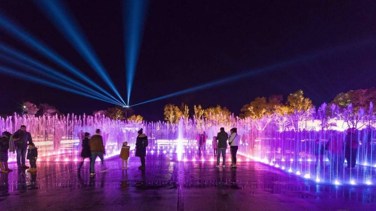 Η γιορτινή βραδιά ξεκινά στο σιντριβάνι, με ένα show που συνδυάζει, μουσική, χορό και φαντασία με τη συνοδεία 12μελούς ορχήστρας υπό τη διεύθυνση του Ανδρέα Τσελίκα. Σειρά έχει το φως που θα μεταμορφώσει το Πάρκο σε ένα εντυπωσιακό, παραμυθένιο σκηνικό, όπου θα κυριαρχεί το μπλε και το μωβ χρώμα.