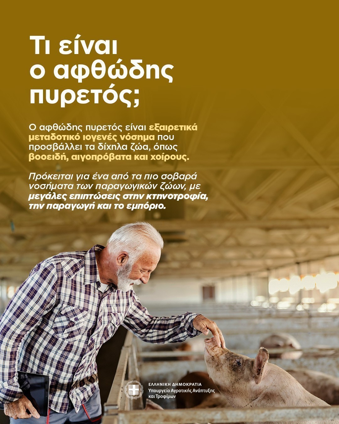 Το βασικό μήνυμα είναι απόλυτη συμμόρφωση με τα μέτρα, αυστηρή βιοπροφύλαξη και αποφυγή κάθε μη αναγκαίας μετακίνησης ζώων, προϊόντων και υλικών που μπορεί να συμβάλει στη διασπορά της νόσου.