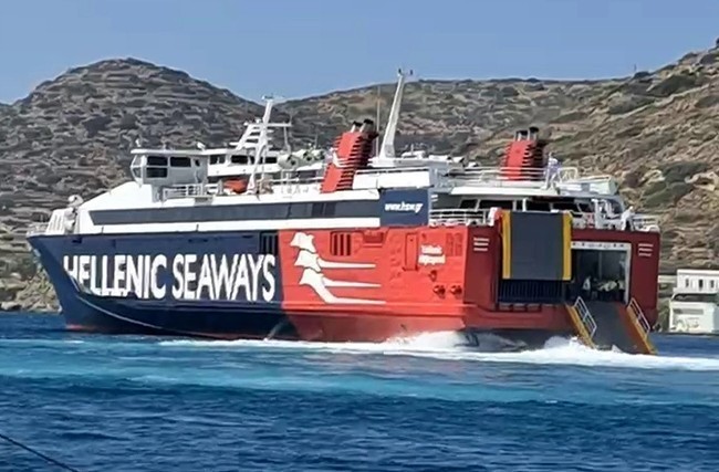 Ταλαιπωρία για τους επιβάτες του πλοίου Hellenic Highspeed στην Αμοργό που ακινητοποιήθηκε το Σάββατο διότι έπεσε ένας από τους δύο καταπέλτες στη θάλασσα.