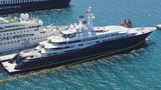 Η πολυτελής θαλαμηγός του σεΐχη αγκυροβόλησε στις 11 στον όρμο της ακτής “Μάραθα”, βραβευμένη επί πολλά χρόνια με την “Γαλάζια Σημαία” και απέναντι από το πολυτελές εμβληματικό ξενοδοχείο “Skiathos Palace”, προκαλώντας τον θαυμασμό του κόσμου αλλά και θέμα συζητήσεων,τόσο για τους Σκιαθίτες όσο και για τους χιλιάδες επισκέπτες που έχουν κατακλύσει το νησί για το τριήμερο του Αγίου Πνεύματος.