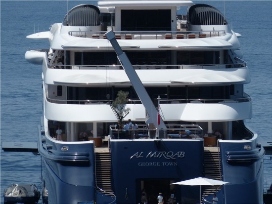 Το πλωτό παλάτι του Καταρινού κροίσου,“Αl Mirqab” μήκους 133 μέτρων, είναι το έκτο μεγαλύτερο yacht στον κόσμο και ένα από τα τρία ακριβότερα που έχουν κατασκευαστεί. Έχει πλήρωμα 51 ατόμων, διαθέτει 12 σουίτες, δύο πισίνες, ελικοδρόμιο, γυμναστήριο, τζακούζι και αίθουσα κινηματογράφου, ενώ κόστισε 300.000.000 ευρώ. Ναυπηγήθηκε το 2008 στη Γερμανία και χαρακτηρίστηκε το πιο σύγχρονο και πολυτελές σκάφος εκείνης της χρονιάς. Στο εσωτερικό του υπάρχουν έπιπλα σκαλισμένα στο χέρι, καναπέδες με πολλά μαξιλάρια, χαλιά Περσίας, μαρμάρινα δάπεδα και μπρούτζινες χειρολαβές, ενώ τους τοίχους κοσμούν πίνακες διάσημων ζωγράφων μεταξύ των οποίων έργα των Βαν Γκογκ και Πικάσο. Κάθε σουίτα διαθέτει δικό της μπάνιο και μπαλκόνι στο κατάστρωμα του σκάφους.