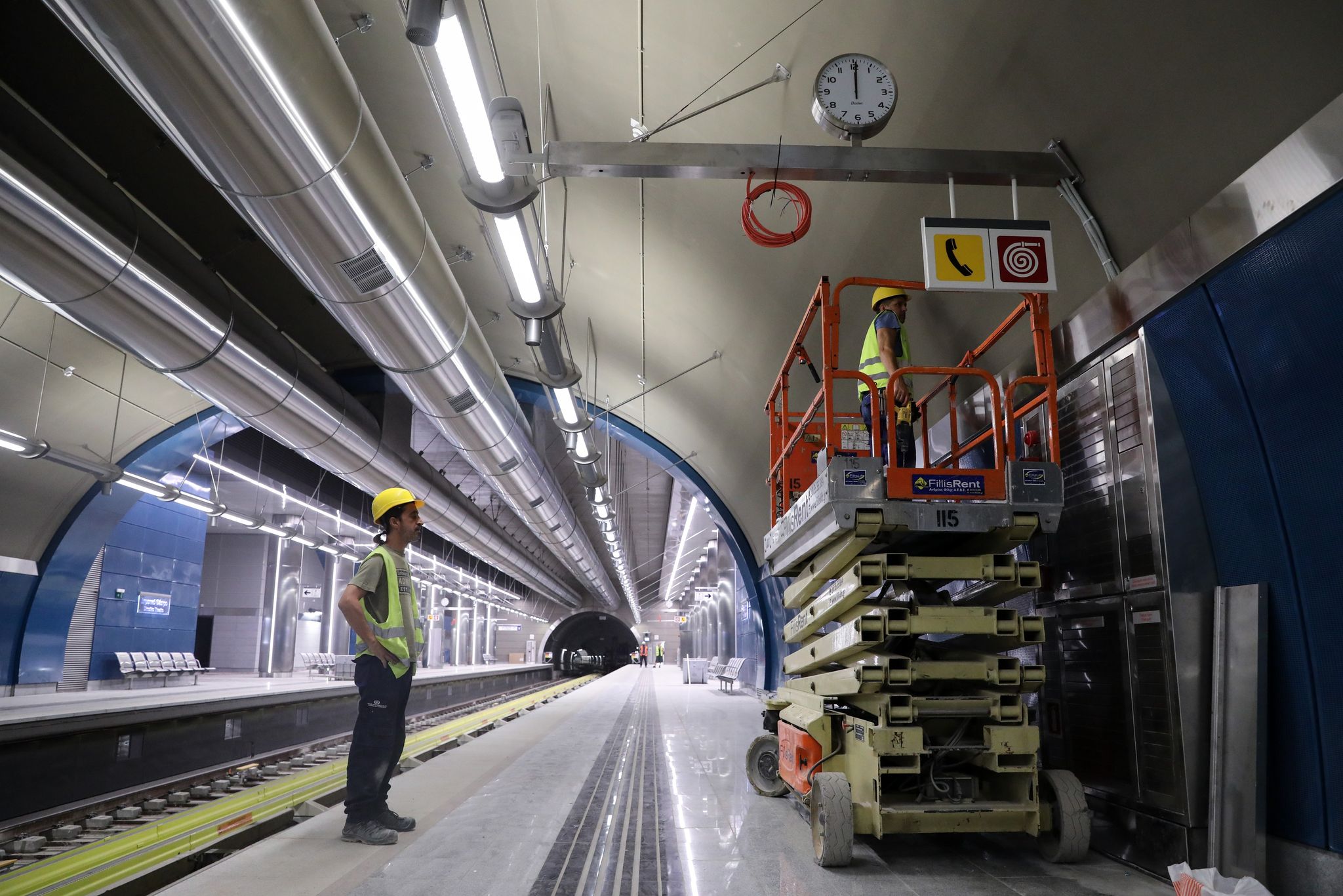 Οι εργασίες στις αποβάθρες περιλαμβάνουν τις τοποθετήσεις των ηλεκτρονικών και ηλεκτρικών συστημάτων. Πρόκειται για τις τελευταίες πινελιές, μιας και σχεδόν το σύνολο των εργασιών, έχει ολοκληρωθεί.