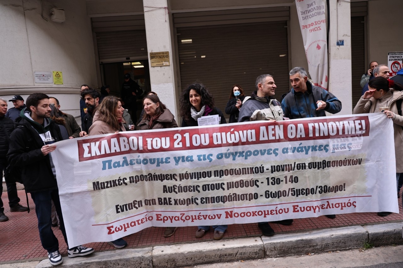 Στις 9 το πρωί οι εργαζόμενοι είχαν προγραμματίσει συγκέντρωση στο Υπουργείο Υγείας. Ύστερα θα κάνουν πορεία διαμαρτυρίας προς το Υπουργείο Οικονομικών.