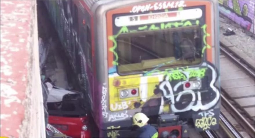 Στην συνέχεια, το τρένο που περνούσε εκείνη την ώρα, παρέσυρε το κόκκινο Smart, με αποτέλεσμα αυτό να σφηνώσει ανάμεσα στο τοιχίο και τον συρμό.