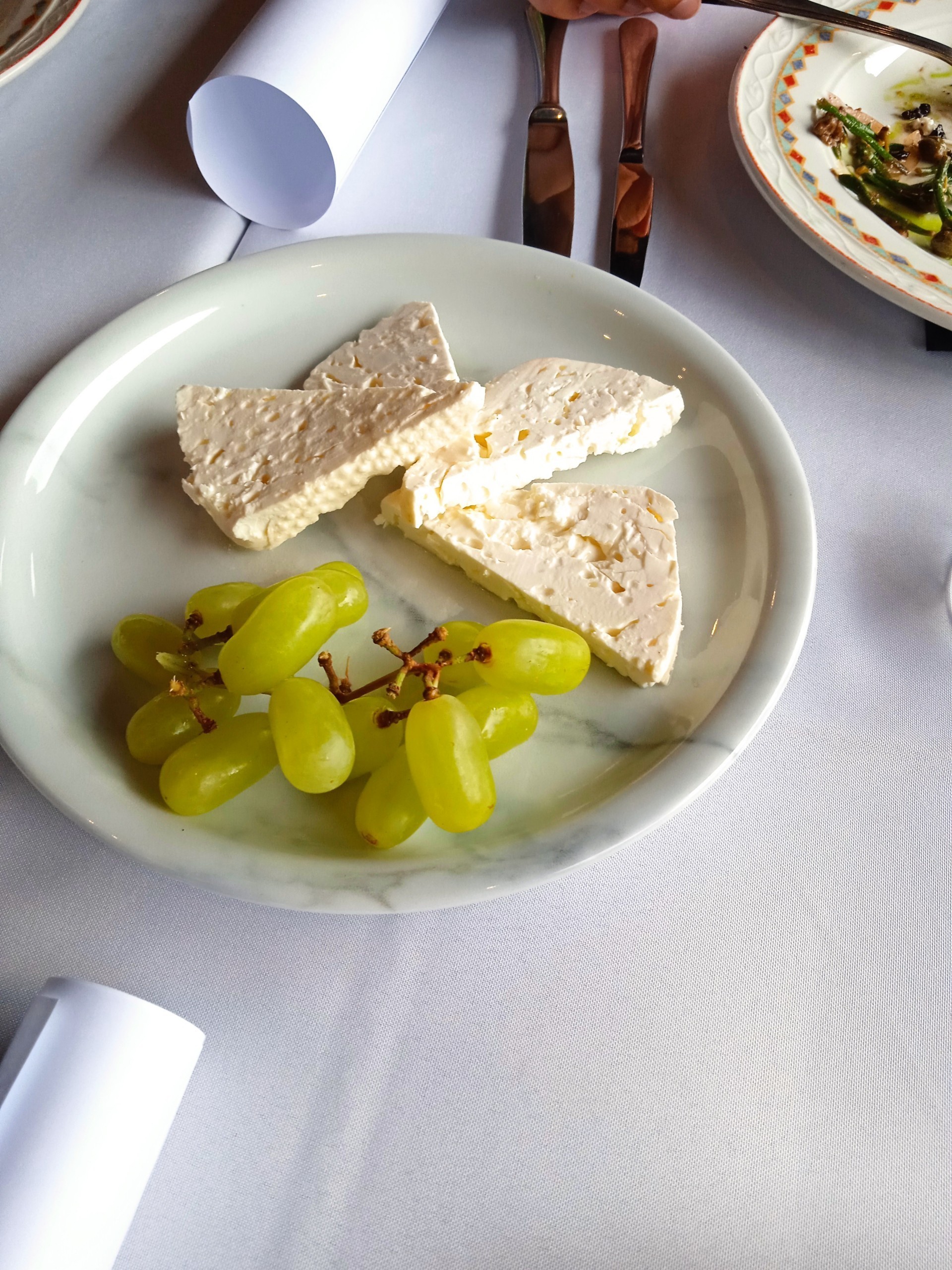 Στα τραπέζια στολισμένα με λινά τραπεζομάντιλα και φίνες πορσελάνες βρέθηκε και το κατσικίσιο τυρί από την Χαλκιδική, ενώ τα κρυστάλλινα ποτήρια γέμιζαν με κόκκινο κρασί από τη Βόρεια Ελλάδα.