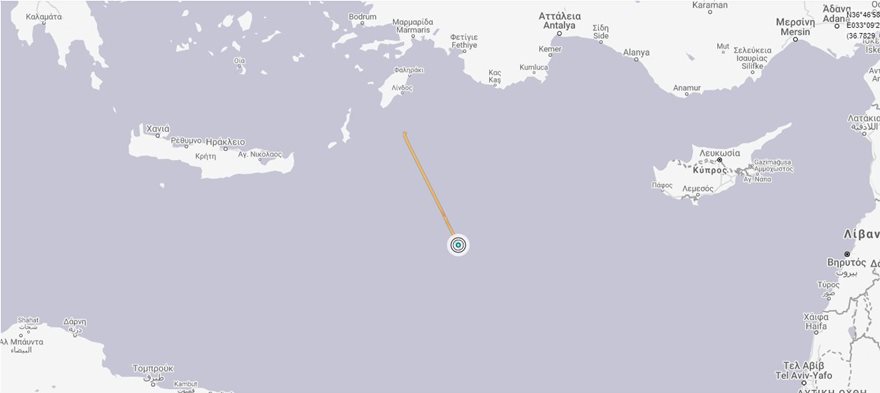 Στη μέση της Μεσογείου με κατεύθυνση προς την Αίγυπτο έπλεε περίπου στις 10 το βράδυ της Δευτέρας το Oruc Reis.