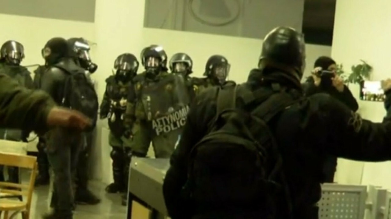 Άνδρες των ΜΑΤ μπήκαν στο κτίριο από δύο σημεία. Πιο συγκεκριμένα εισήλθαν από το υπόγειο και την κεντρική είσοδο του κτιρίου και έψαξαν όλο το κτίριο για τον εντοπισμό ατόμων.
