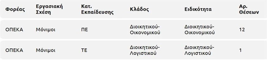 Ο προγραμματισμός προσλήψεων στο Δημόσιο για το 2025, περιλαμβάνει και 13 μόνιμες προσλήψεις στον Οργανισμό Προνοιακών Επιδομάτων και Κοινωνικής Αλληλεγγύης (ΟΠΕΚΑ), οργανισμού υπηρεσιών πρόνοιας στην Αθήνα.