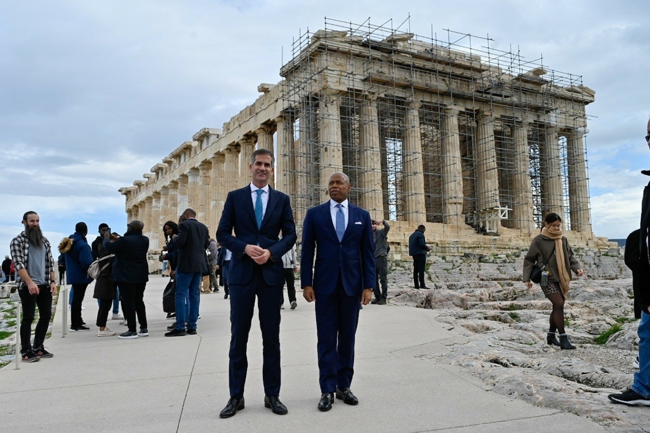 Ο Δήμαρχος Αθηναίων, ακολούθως, ξενάγησε τον κ. Άνταμς στον Ιερό Βράχο της Ακρόπολης, με τον Δήμαρχο της Νέας Υόρκης να εκφράζει τον ενθουσιασμό του, αντικρίζοντας το παγκόσμιο σύμβολο της πολιτιστικής κληρονομιάς της Αθήνας.