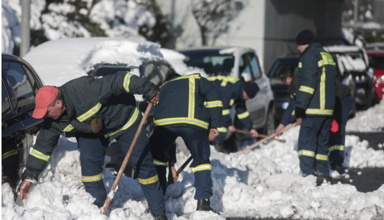 Πρόκειται για το σχέδιο «ΔΕΥΚΑΛΙΩΝ» στο πλαίσιο του οποίου στελέχη των ενόπλων δυνάμεων, οπλίτες, σμηνίτες, ακόμα και ναύτες με τα φτυάρια στα χέρια προσπαθούν να απεγκλωβίσουν τα αυτοκίνητα.