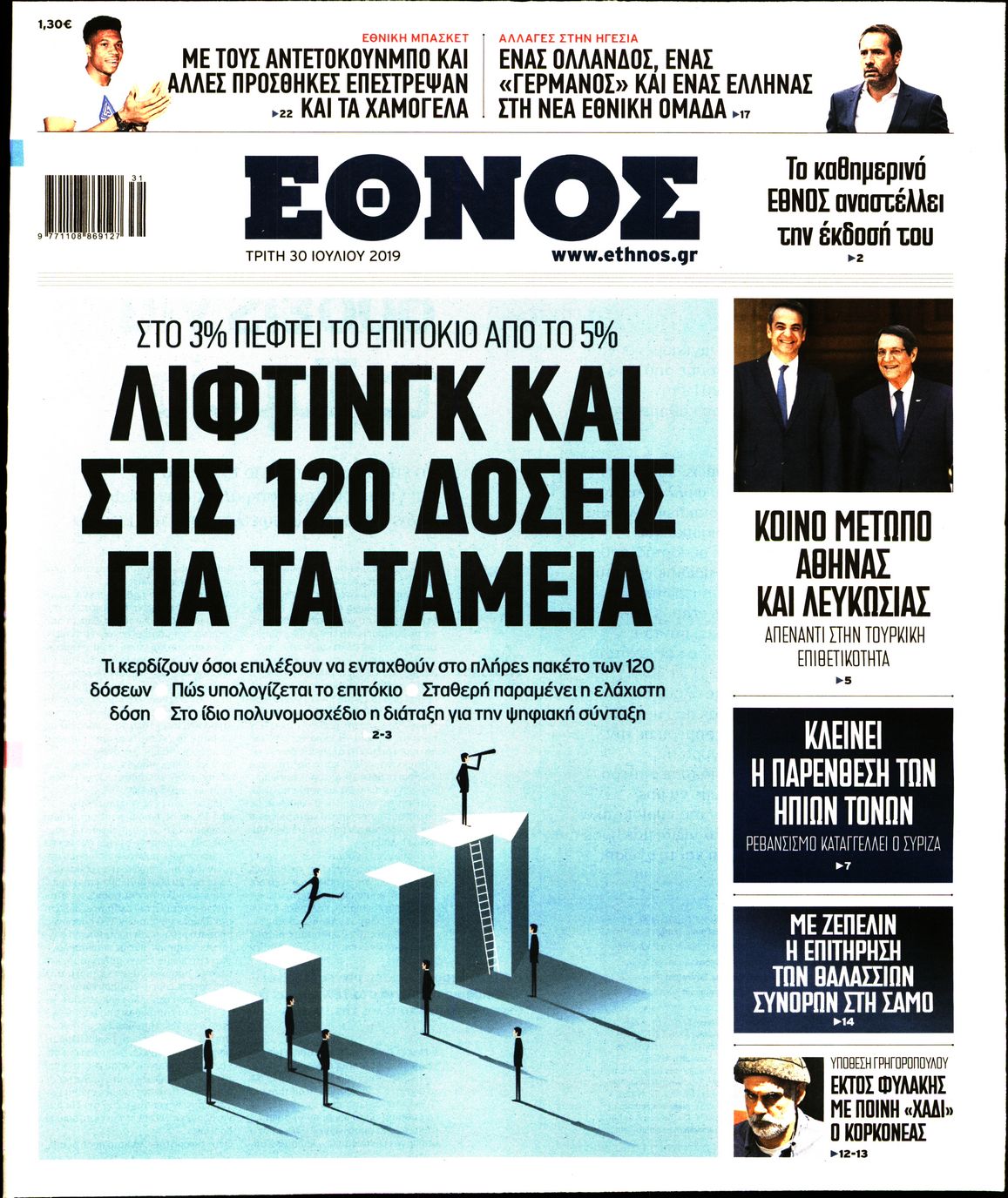 Το σημερινό είναι το τελευταίο φύλλο της καθημερινής έκδοσης του Έθνους καθώς, απο εδώ και στο εξής, η ιστορική εφημερίδα θα κυκλοφορεί μόνο την Κυριακή.