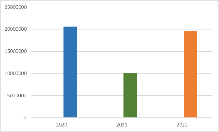 Συνολικός αριθμός επιθέσεων από τραπεζικά Trojans, 2020-2022 (Ιανουάριος – Οκτώβριος)