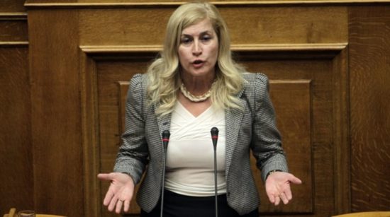 Η βουλευτής της ΝΔ ήταν στο βήμα και απευθυνόμενη προς τα υπουργικά έδρανα κατηγόρησε την κυβέρνηση ότι με την «υπερήφανη διαπραγμάτευση» οι καταθέσεις στις τράπεζες μειώθηκαν κατά 40 δις ευρώ ενώ η Ελλάδα χρεώθηκε με 86 δισ. ευρώ.