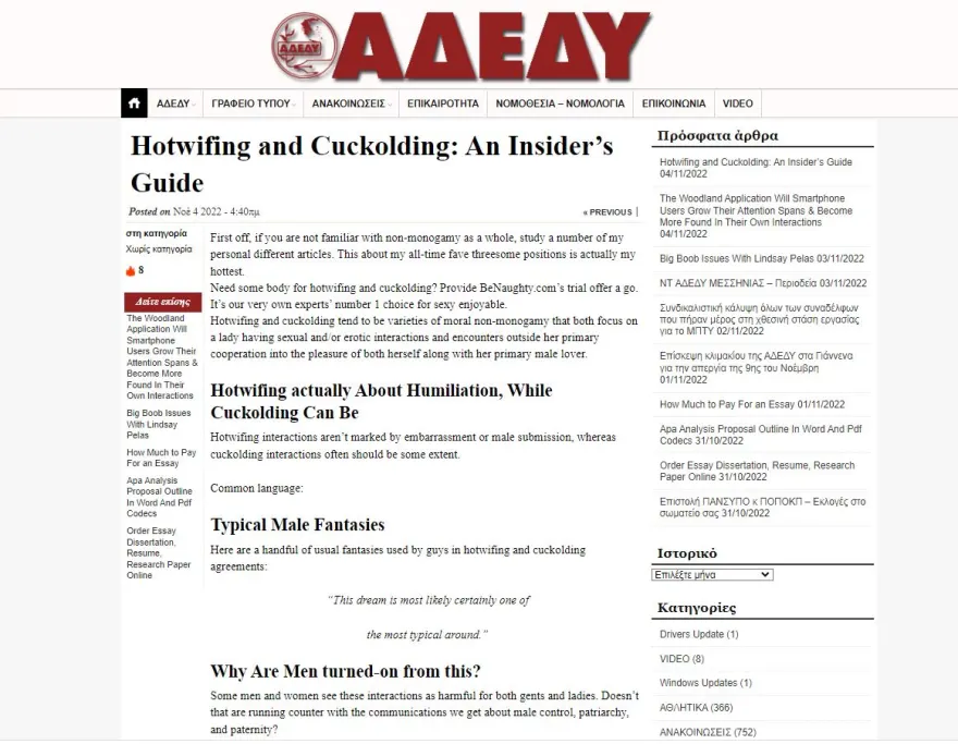 Κυβερνοεπίθεση δέχθηκε το πρωί της Παρασκευής η σελίδα της Ανώτατης Διοίκησης Ενώσεων Δημοσίων Υπαλλήλων, ΑΔΕΔΥ. Όπως φαίνεται, άγνωστοι χάκαραν τη ιστοσελίδα της και στην κατηγορία Δελτία Τύπου «ανέβασαν» κείμενα πορνογραφικού περιεχομένου.