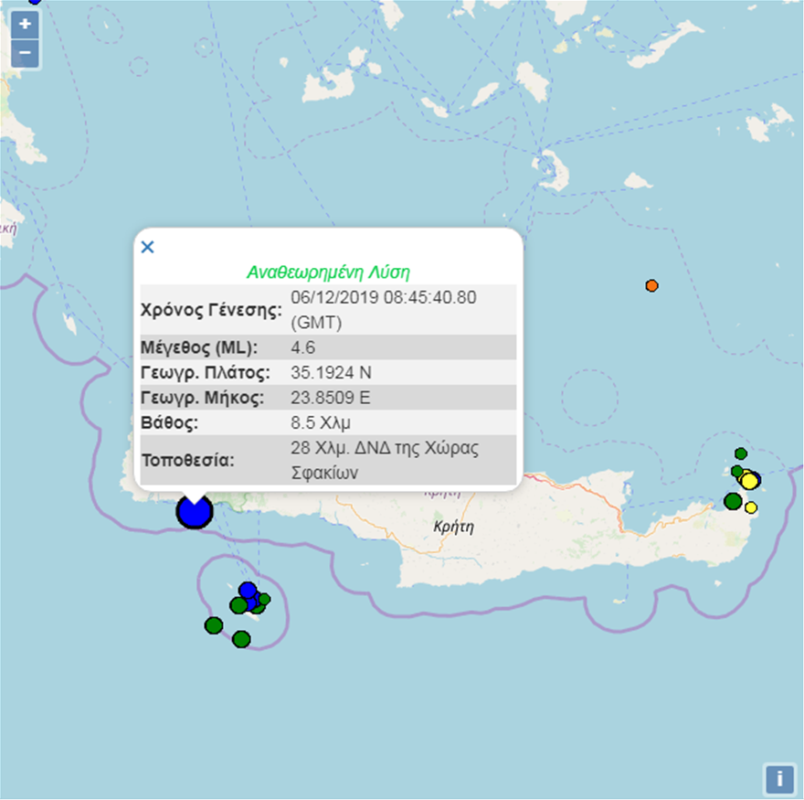 Η σεισμική δόνηση έγινε ιδιαίτερα αισθητή στοn νομό Χανίων αλλά και σε άλλες περιοχές του νησιού και είχε εστιακό βάθος 8,5 χιλιόμετρα.