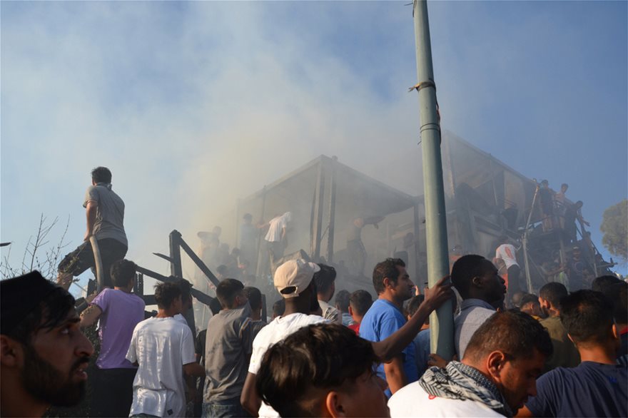 Η φωτιά ξέσπασε στο κοντέινερ που διέμεναν η μητέρα και το μωράκι της. Στο άκουσμα του φρικτού θανάτου που βρήκε τη μητέρα και το παιδάκι της, πληροφορία που έχει κάνει γνωστή ο περιφερειάρχης Βορείου Αιγαίου, Κωνσταντίνος Μουτζούρης – οι επίσημες ανακοινώσεις αναφέρουν μόνο για τη νεκρή μητέρα -, εκατοντάδες πρόσφυγες και μετανάστες άρχισαν να ξεσπούν σε ό,τι έβρισκαν μπροστά τους.