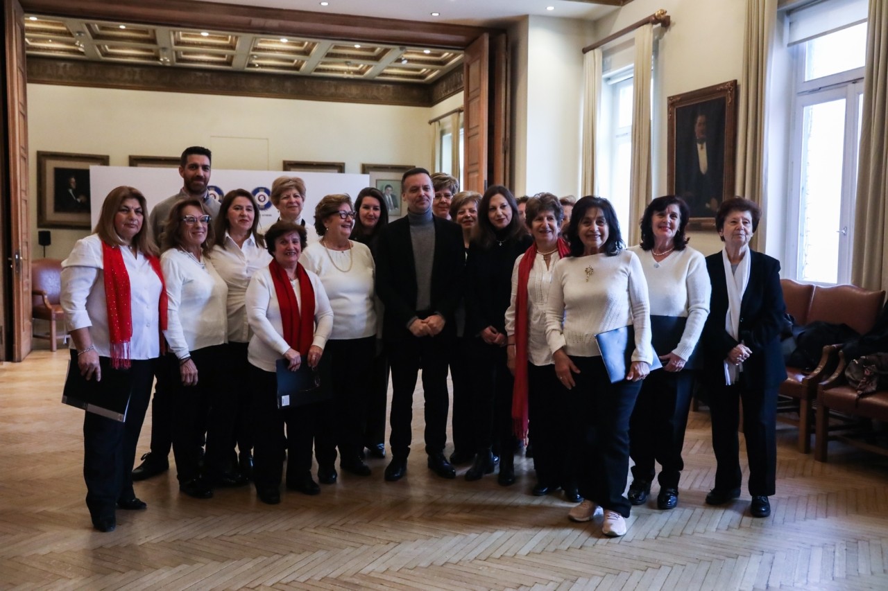 Πλημμύρισε από πρωτοχρονιάτικες μελωδίες, αλλά και παραδοσιακούς χορούς σήμερα το Δημαρχείο της Αθήνας. Από νωρίς το πρωί οι πρόσκοποι και σύλλογοι από διάφορα μέρη της Ελλάδας έψαλαν τα κάλαντα στον δήμαρχο Αθηναίων Χάρη Δούκα, όπως το Σώμα Ελλήνων Προσκόπων, ο Κρητικός Λαογραφικός και Πολιτιστικός Σύλλογος «Απτεραίοι», «Η Πανθεσσαλική Στέγη», ο Ελληνικός Πολιτιστικός Χορευτικός Σύλλογος «Δικταίοι-Καστρινοί» και η Λέσχη Φιλίας Ελληνορώσων.