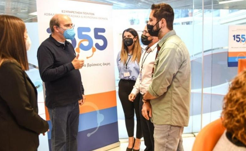 Τις εγκαταστάσεις του Ενιαίου Αριθμού Εξυπηρέτησης Πολιτών 1555 στη Mediatel επισκέφθηκε σήμερα Σάββατο ο υπουργός Εργασίας και Κοινωνικών Υποθέσεων, Κωστής Χατζηδάκης. Ο υπουργός ενημερώθηκε για την πορεία του έργου από την Τετάρτη και έπειτα, οπότε τέθηκε σε πλήρη λειτουργία, αλλά και για τη λειτουργία του το Σαββατοκύριακο.