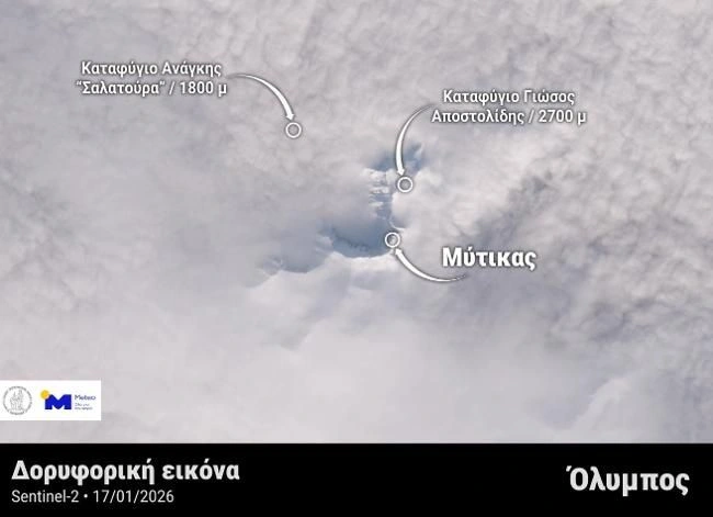 Παρόμοιο σκηνικό είχε καταγραφεί και το Σάββατο 17/01, όταν ο ευρωπαϊκός δορυφόρος Sentinel-2 απεικόνισε τις χιονισμένες κορυφές του Ολύμπου να προβάλλουν καθαρά πάνω από το εκτεταμένο νέφος που κάλυπτε τις χαμηλότερες περιοχές.