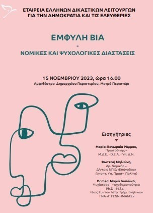 Μια σημαντική εκδήλωση και εξέταση των επιπτώσεων της Έμφυλης βίας, φιλοξενείται την Τετάρτη 15 Νοεμβρίου στη χώρα μας, με τη συμμετοχή Δικαστών και Εισαγγελέων από την Ευρώπη αλλά και χώρες των Βαλκανίων.