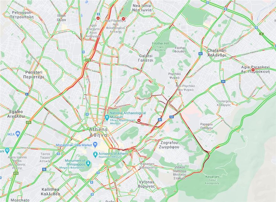Ήδη καταγράφεται αυξημένη κίνηση στην κάθοδο της Κατεχάκη απο το ύψος της Καισαριανής και στην κάθοδο της Κηφισίας από το ύψος του Ψυχικού.