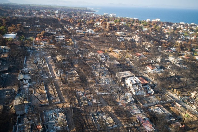 «Μπήκαμε στη θάλασσα, κάποια στιγμή χάσαμε τη στεριά, δεν βλέπαμε. Κολυμπούσαμε, προσπαθούσαμε να μείνουμε ενωμένοι, ο αέρας δυνάμωνε όσο περνούσε η ώρα. Προσπαθούσαμε να μείνουμε σε κοντινή απόσταση ο ένας από τον άλλον. Έπεφταν σπίθες, κουκουνάρια στο νερό. Κάποια στιγμή δυσκόλεψαν τα πράγματα πάρα πολύ. Ακούγαμε τα αεροπλάνα και νομίζαμε ότι έρχονταν να μας σώσουν, φωνάζαμε “βοήθεια”. Κάποια στιγμή η γυναίκα μου λέει, “αυτό ήταν!”. Μετά από πολλές ώρες είδαμε κάτι φώτα. Είχαμε φτάσει κοντά στο λιμάνι της Ραφήνας, ήταν φώτα πλοίου. Ερχόταν ένα ψαροκάικο. Μας έριξε φως με φακό, μετά μια κουλούρα. Η γυναίκα μου είχε πάθει υποθερμία, τα παιδιά είχαν γίνει μπλε. Μας έδωσαν κουβέρτες. Είδα έναν παππού να επιπλέει στη θάλασσα… Ανέσυραν μια γυναίκα, της έκαναν ανάνηψη, δεν τα κατάφερε… Μας έβγαλαν στην ακτή, από το σοκ δεν θυμόμασταν να πάρουμε τηλέφωνο κάποιον δικό μας… Δεν βλέπαμε καλά, στην ακτή φαίνονταν κάποια ασθενοφόρα. Εκεί είδαμε πλαστικές σακούλες μαύρες που τις έκλειναν…», είπε ο κ. Φλώρος ο οποίος τόνισε πως αν είχαν μείνει στο σπίτι τους θα είχαν καεί ζωντανοί και πως «τον μόνο ένστολο που είδα, ήταν μια λιμενικός στις 11 τη νύχτα στο λιμάνι της Ραφήνας».
