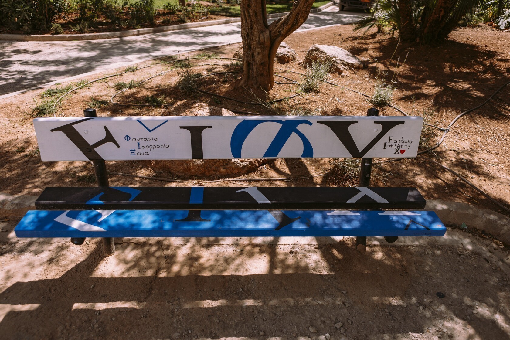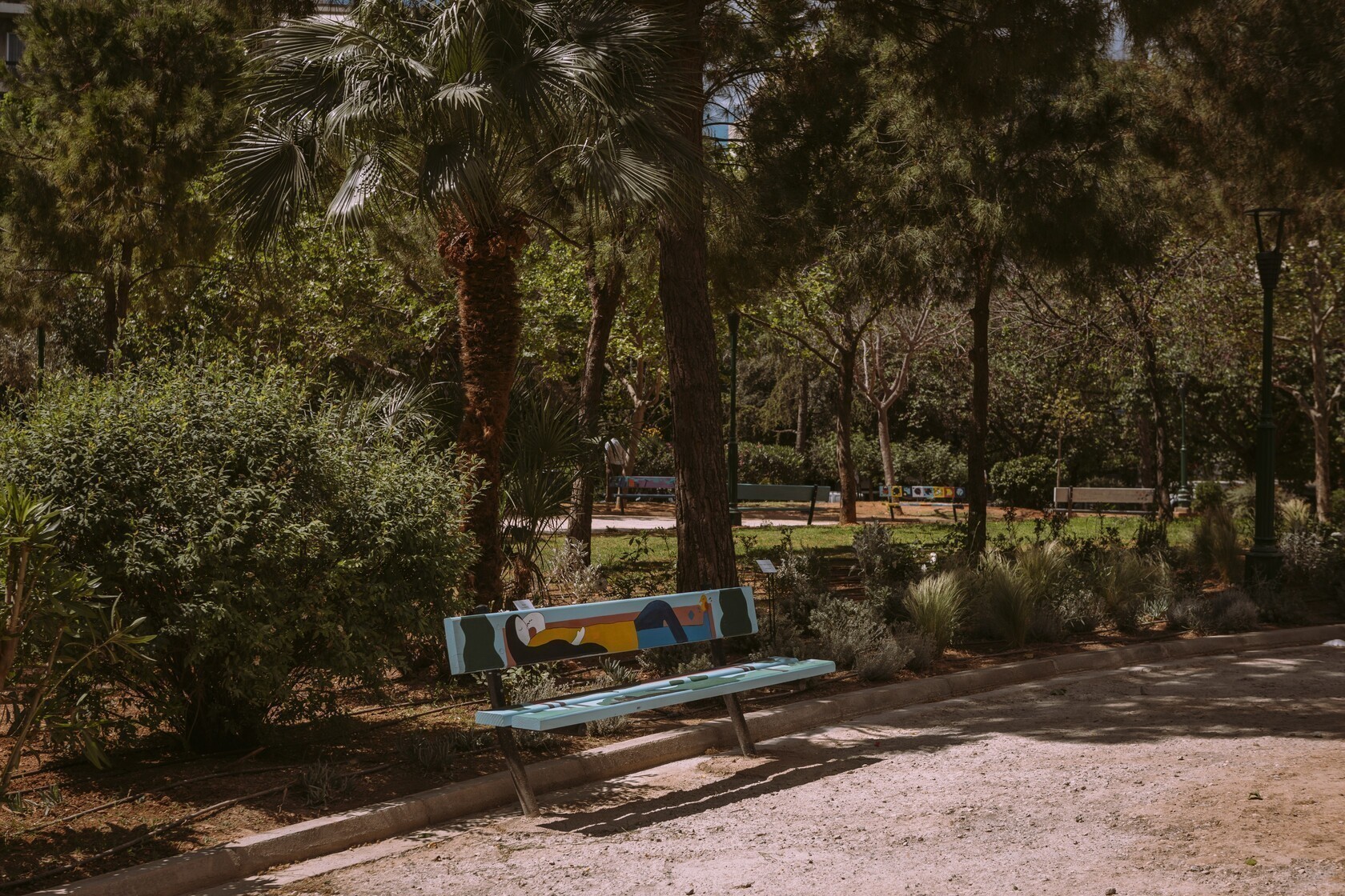 Τέλος, τα 27 παγκάκια του πάρκου φιλοτεχνήθηκαν από σπουδαστές του εκπαιδευτικού ομίλου ΑΚΤΟ, στο πλαίσιο ευρύτερης συνεργασίας με την Ολυμπιακή Ζυθοποιία, δίνοντας εικαστική χροιά στο χώρο.