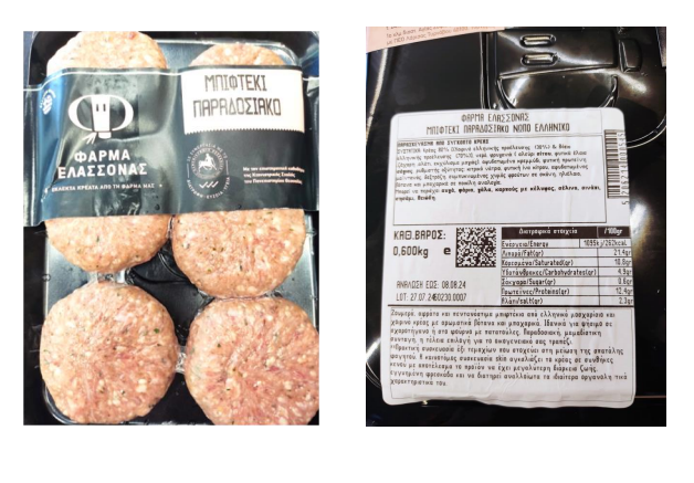παρασκευάσματος κρέατος (χοιρινό-βοδινό) με τα στοιχεία: «ΜΠΙΦΤΕΚΙ ΠΑΡΑΔΟΣΙΑΚΟ ΝΩΠΟ» βάρους 0,600 κιλών, με ημερομηνία παρασκευής: 27/07/2024 LOT 27.07.2024 60230007 και ημερομηνία ανάλωσης έως: 08/08/2024. Παρασκευαστής/Συσκευαστής: «ΚΑΣΙΔΗΣ Α.Ε» με διακριτικό τίτλο «ΦΑΡΜΑ ΕΛΑΣΣΟΝΑΣ».