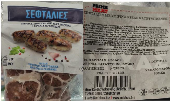 «Ο Ε.Φ.Ε.Τ. και ειδικότερα η Περιφερειακή Διεύθυνση Κρήτης, κατά τη διενέργεια ελέγχων στο πλαίσιο του Προγράμματος «Επίσημος Έλεγχος Μικροβιολογικών Κριτηρίων Ασφάλειας Τροφίμων» έτους 2023, προέβη σε δειγματοληψία του προϊόντος, «ΣΕΦΤΑΛΙΕΣ ΜΕ ΧΟΙΡΙΝΟ ΚΡΕΑΣ ΚΑΤΕΨΥΓΜΕΝΕΣ», με αριθ.