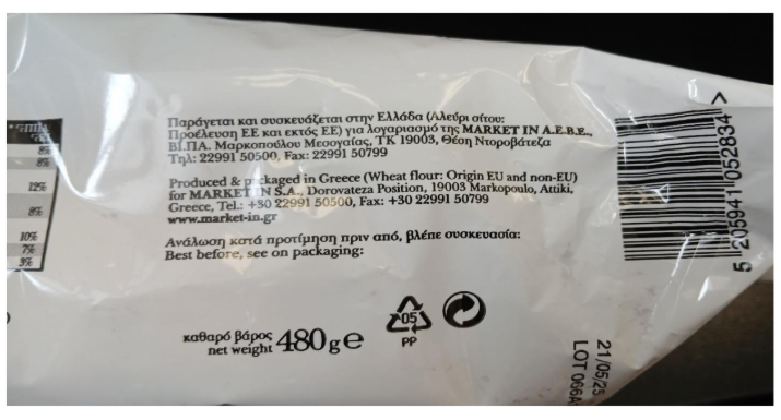 Αναλυτικότερα, ο ΕΦΕΤ και ειδικότερα η Περιφερειακή Διεύθυνση Δυτικής Ελλάδας, στο πλαίσιο του Προγράμματος «Επίσημος Έλεγχος για την Παρακολούθηση των Επιπέδων Προσθέτων Τροφίμων και Αρωματικών Ουσιών σε Τρόφιμα», προέβη σε δειγματοληψία τροφίμου με τα στοιχεία: «Τσουρέκι με γέμιση πραλίνα φουντουκιού – μικρές φάρμες του βουνού» με ημερομηνία ανάλωσης κατά προτίμηση πριν από τις 21/05/25 και αριθμό παρτίδας Lot 066A1, συσκευασίας καθαρού βάρους 480 γρ., το οποίο παράγεται και συσκευάζεται στην Ελλάδα για λογαριασμό της ΜΑΡΚΕΤ ΙΝ ΑΕΒΕ που εδρεύει στην ΒΙΠΑ Μαρκοπούλου Μεσογαίας.