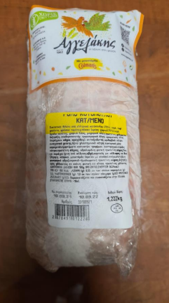 «Ρολό Κοτόπουλο Κατεψυγμένο», με αριθμό παρτίδας: 33100921, ημερομηνία παραγωγής: 10.09.2021 και ημερομηνία ανάλωσης κατά προτίμηση πριν από 10-09-2022, καθαρού βάρους 1,22 kg, που παράγεται από την επιχείρηση ΑΓΓΕΛΑΚΗΣ Α.Ε. και σε συνεργασία με τα Εργαστήρια, Δοκιμών και Ερευνών Τροφίμων Αθήνας του ΕΦΕΤ, διαπιστώθηκε η παρουσία του παθογόνου βακτηρίου Salmonella spp.