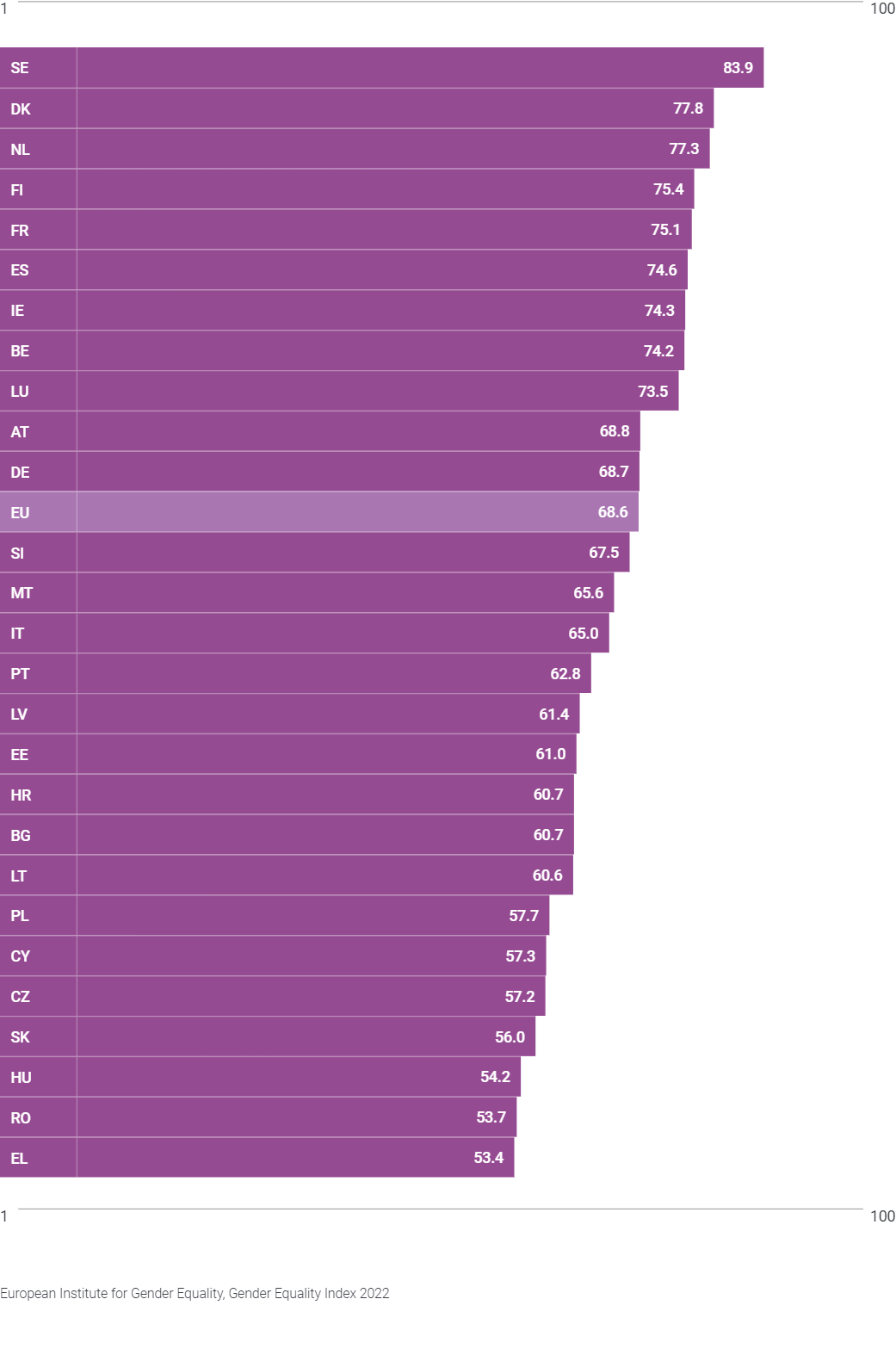 Το Ευρωπαϊκό Ινστιτούτο για την Ισότητα των Φύλων (European Institute for Gender Equality, EIGE) δημοσίευσε, την Παρασκευή 16 Δεκεμβρίου, τον Δείκτη Ισότητας των Φύλων (Gender Equality Index) του 2022.
