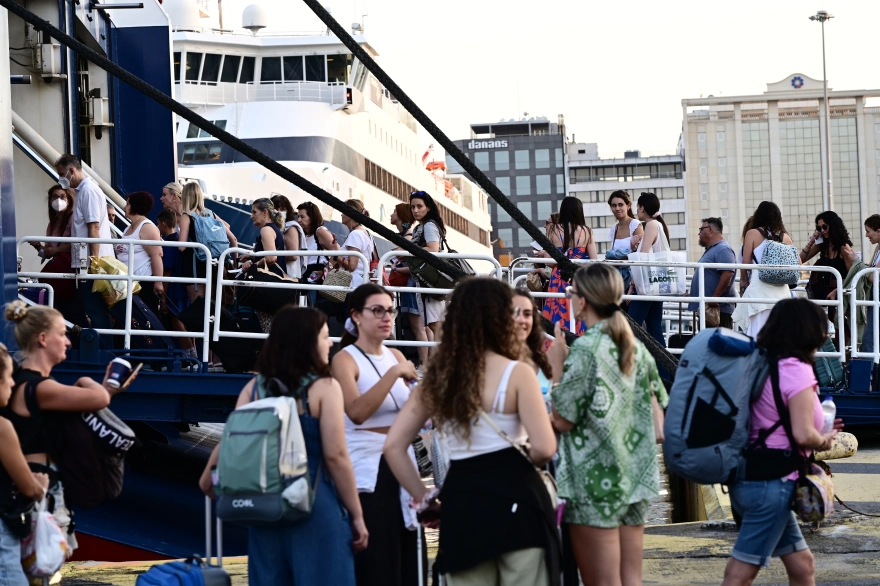 Συνωστισμός επικρατεί από το πρωί στο λιμάνι του Πειραιά, καθώς αναχωρούν μαζικά οι αδειούχοι, με προορισμό κατά κύριο λόγο τη νησιωτική χώρα. Ανάμεσα στους ταξιδιώτες είναι και πολλοί τουρίστες από το εξωτερικό.