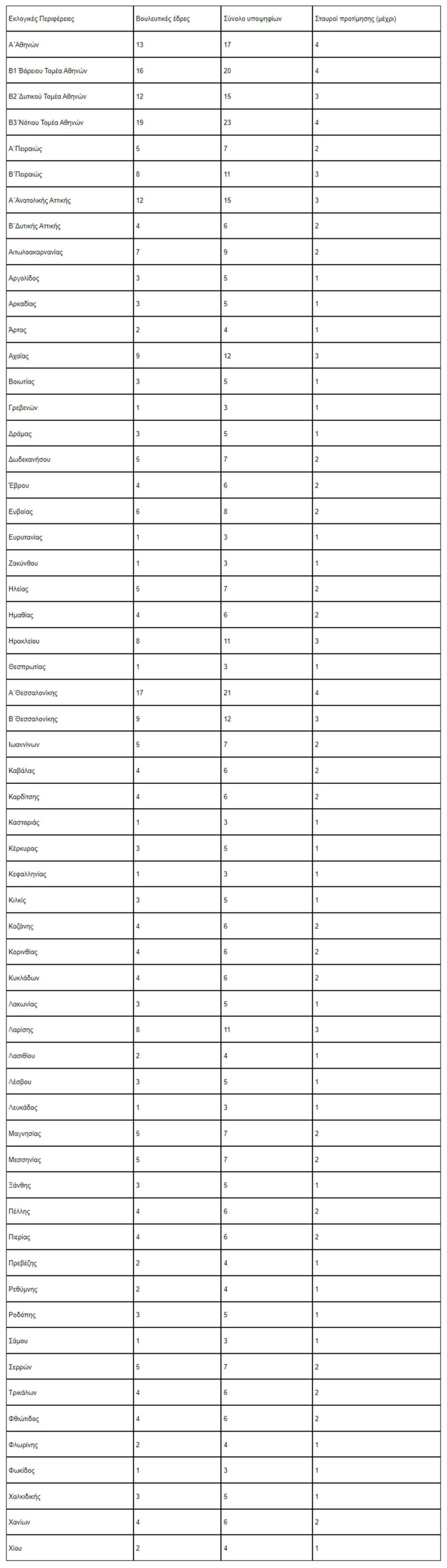 Όσον αφορά τους σταυρούς που επιτρέπεται να βάλουν ώστε το ψηφοδέλτιό τους να μην κριθεί άκυρο, απάντηση δεν είναι ίδια για όλους τους ψηφοφόρους, καθώς το ανώτατο επιτρεπόμενο όριο σταυρών προτίμησης διαφέρει από εκλογική περιφέρεια σε εκλογική περιφέρεια. Για παράδειγμα, στην Α’ Αθήνας, οι πολίτες μπορούν να βάλουν έως τέσσερις σταυρούς προτίμησης, ενώ στη Χιό μόλις έναν.