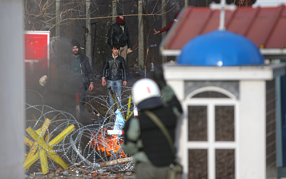 Ομάδες μεταναστών εκτοξεύουν χημικά στις δυνάμεις του στρατού και της Αστυνομίας προκειμένου να καταφέρουν να εισέλθουν σε ελληνικό έδαφος.