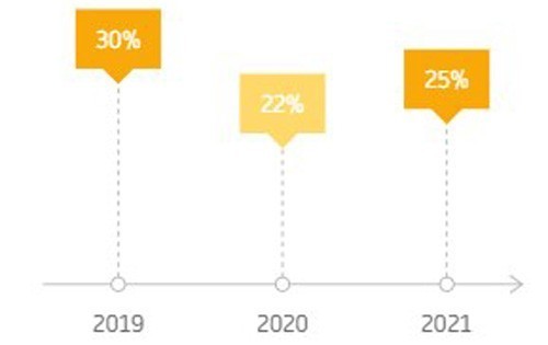 Ένα επίπεδο συμφόρησης 25% για το 2021 σημαίνει ότι, κατά μέσο όρο, οι χρόνοι μετακίνησης ήταν 25% μεγαλύτεροι από ό,τι κατά τη διάρκεια των βασικών συνθηκών χωρίς συμφόρηση.