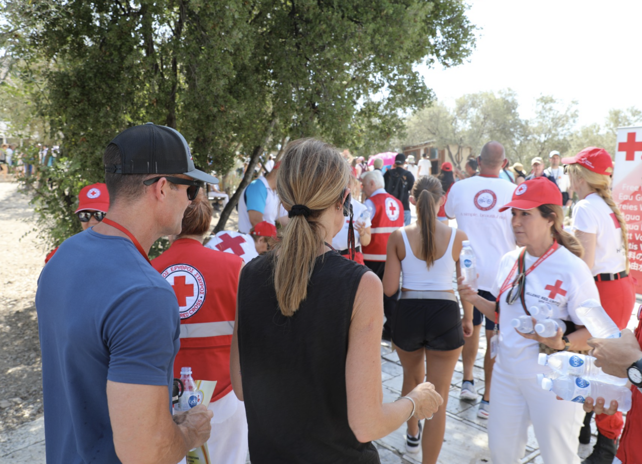 Στην μεγάλη δράση του Ε.Ε.Σ. στην Ακρόπολη παρευρέθη ο Πρόεδρος του Ε.Ε.Σ, Dr. Αντώνιος Αυγερινός. Η δωρεά των χιλιάδων εμφιαλωμένων νερών είναι προσφορά του Ελληνικού Ερυθρού Σταυρού.