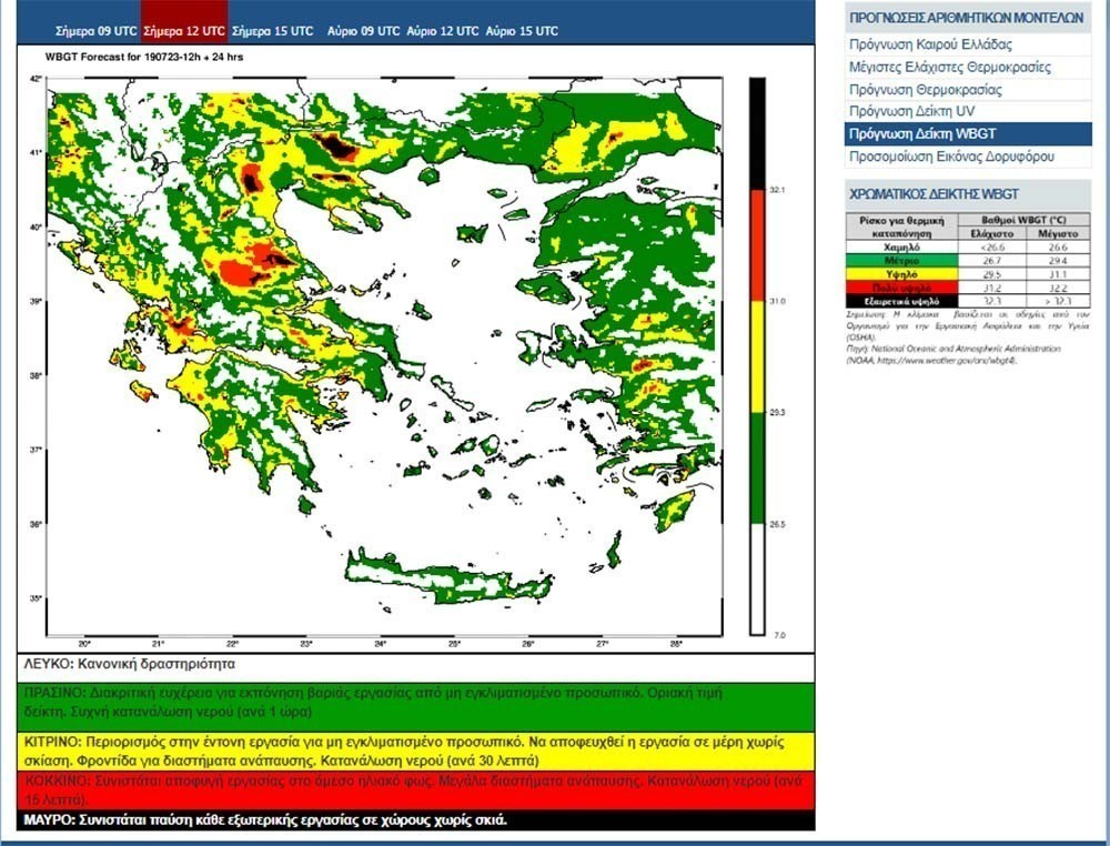 Στη δημοσίευση ειδικού χάρτη προχώρησε η Εθνική Μετεωρολογική Υπηρεσία, με αφορμή τα έκτακτα καιρικά φαινόμενα που επικρατούν τα τελευταία 24ωρα στη χώρα μας. Με τον υδράργυρο να έχει «σκαρφαλώσει» πάνω από τους 40 βαθμούς Κελσίου, ο ειδικός χάρτης της ΕΜΥ αποκαλύπτει το ρίσκο για θερμική καταπόνηση ανά περιοχή.