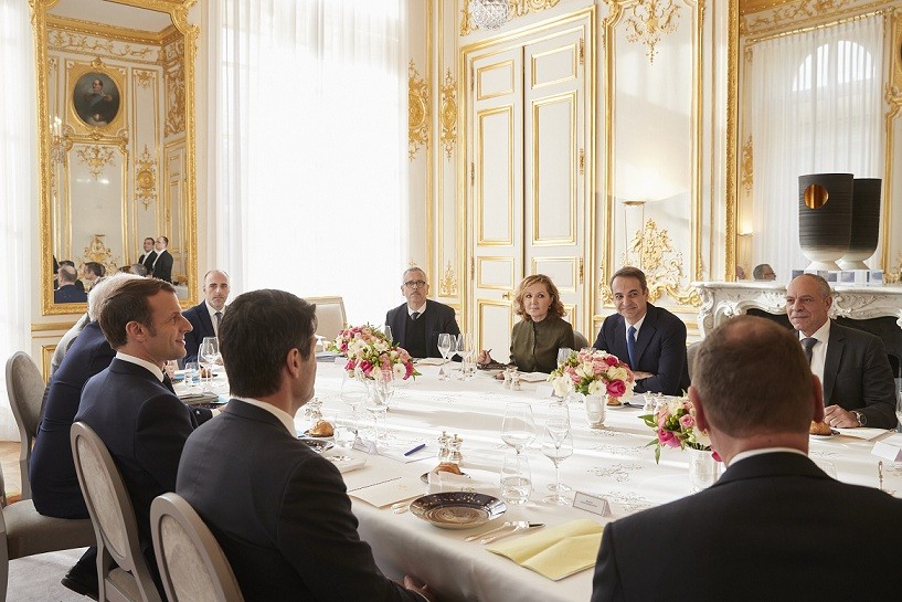 Τη δεύτερη επίσκεψή του στο Παρίσι ως πρωθυπουργός πραγματοποιεί ο Κυριάκος Μητσοτάκης. Στις 2.30 το μεσημέρι διέβη το κατώφλι του Μεγάρου Ελιζέ, έχοντας στο μυαλό του τόσο τα εθνικά θέματα όσο και την οικονομία. Τον πρωθυπουργό υποδέχθηκε ο Γάλλος πρόεδρος Εμμανουέλ Μακρόν. Μετά την συνάντησή τους οι δύο άνδρες θα δώσουν κοινή συνέντευξη Τύπου.