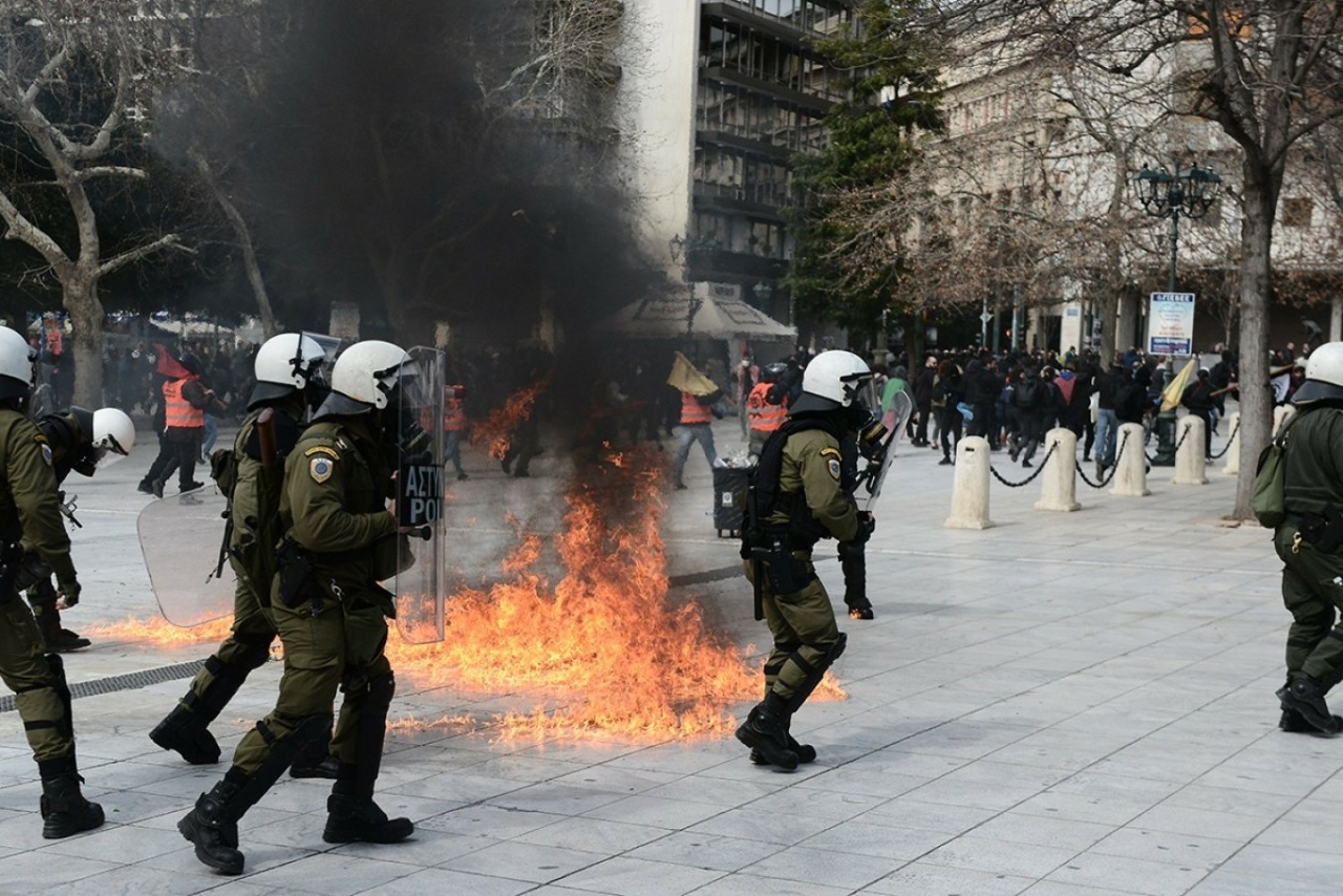 Επεισόδια με κουκουλοφόρους να πετούν βόμβες μολότοφ και άλλα αντικείμενα στους αστυνομικούς σημειώθηκαν στο κέντρο της Αθήνας λίγο μετά τις 13:30 το μεσημέρι όταν και είχε περάσει από το Σύνταγμα το μεγαλύτερο τμήμα της πορείας διαμαρτυρίας για τη σύγκρουση των τρένων στα Τέμπη.