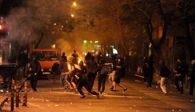 Ειδικότερα, σύμφωνα με την ΕΛΑΣ, τα επεισόδια ξεκίνησαν λίγο πριν τα μεσάνυχτα όταν περίπου 20 άτομα επιτέθηκαν σε διμοιρία των ΜΑΤ που είχε σταθμεύσει στη διασταύρωση των οδών Θεμιστοκλέους και Μεταξά. Οι κουκουλοφόροι πέταξαν 5-6 μολότοφ εναντίον της διμοιρίας και εξαφανίστηκαν.